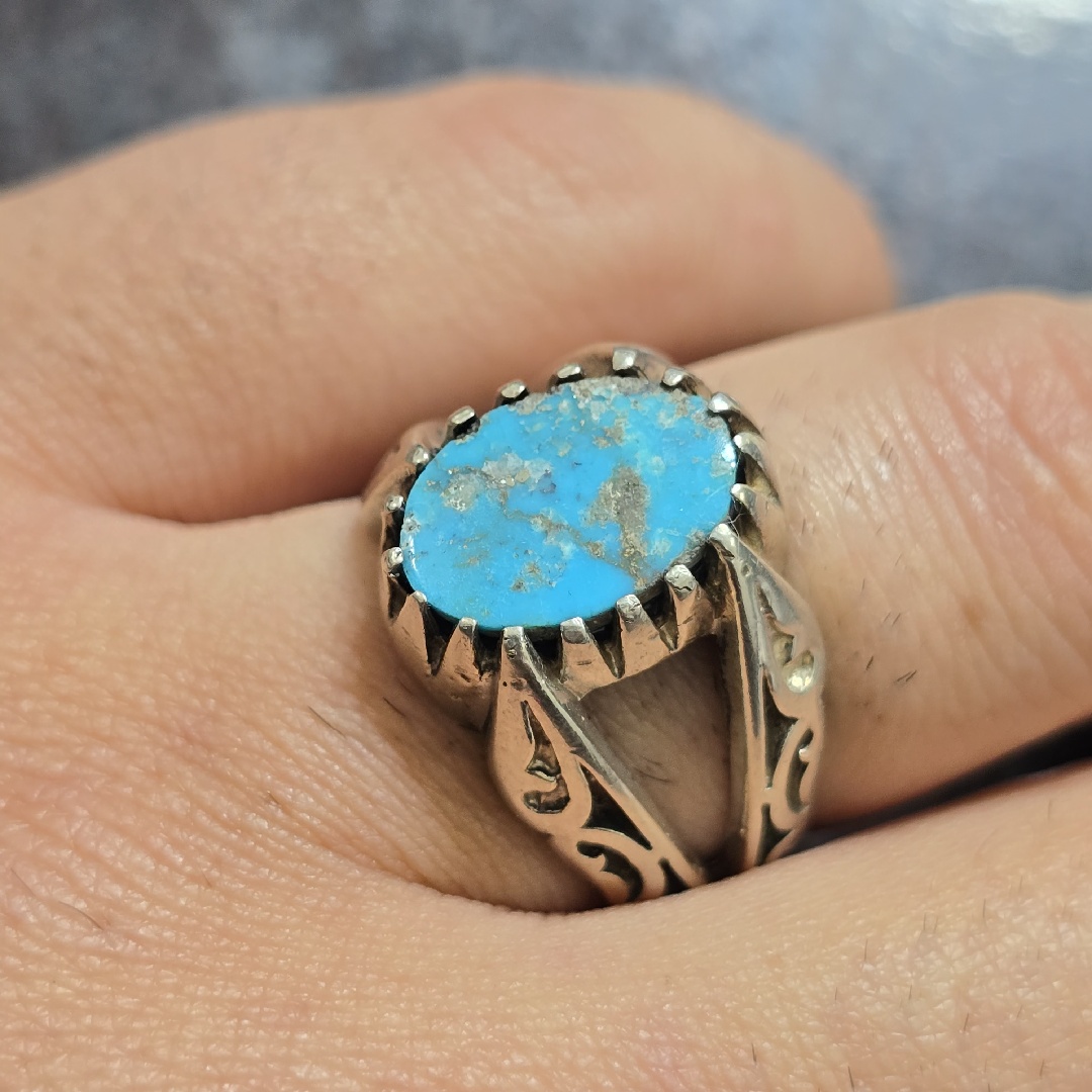 انگشتر نقره مردانه فیروزه نیشابوری معدنی