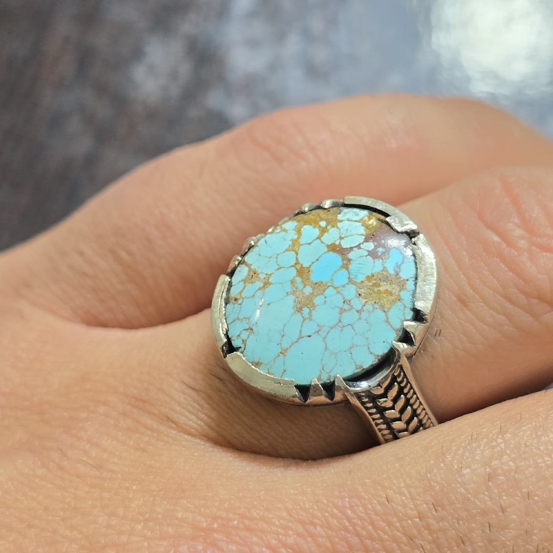 انگشتر نقره مردانه فیروزه نیشابوری معدنی