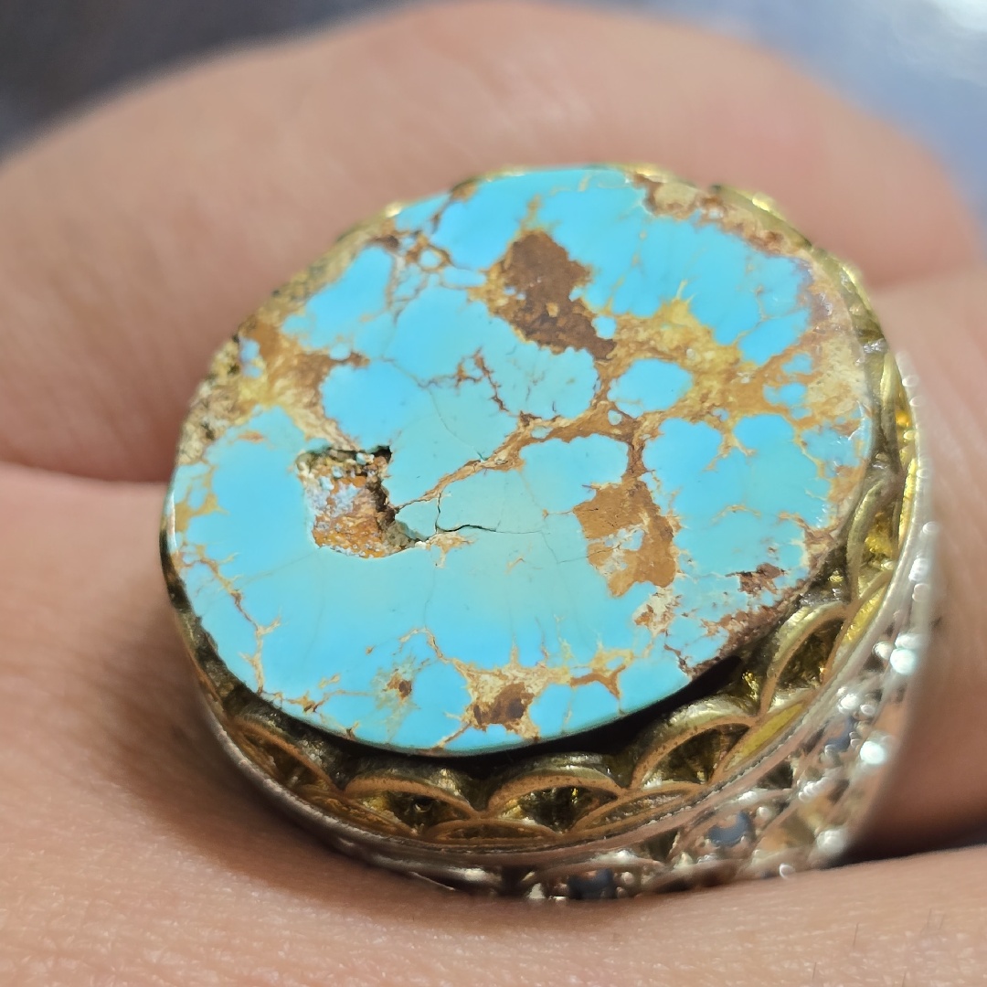 انگشتر نقره مردانه فیروزه نیشابوری معدنی