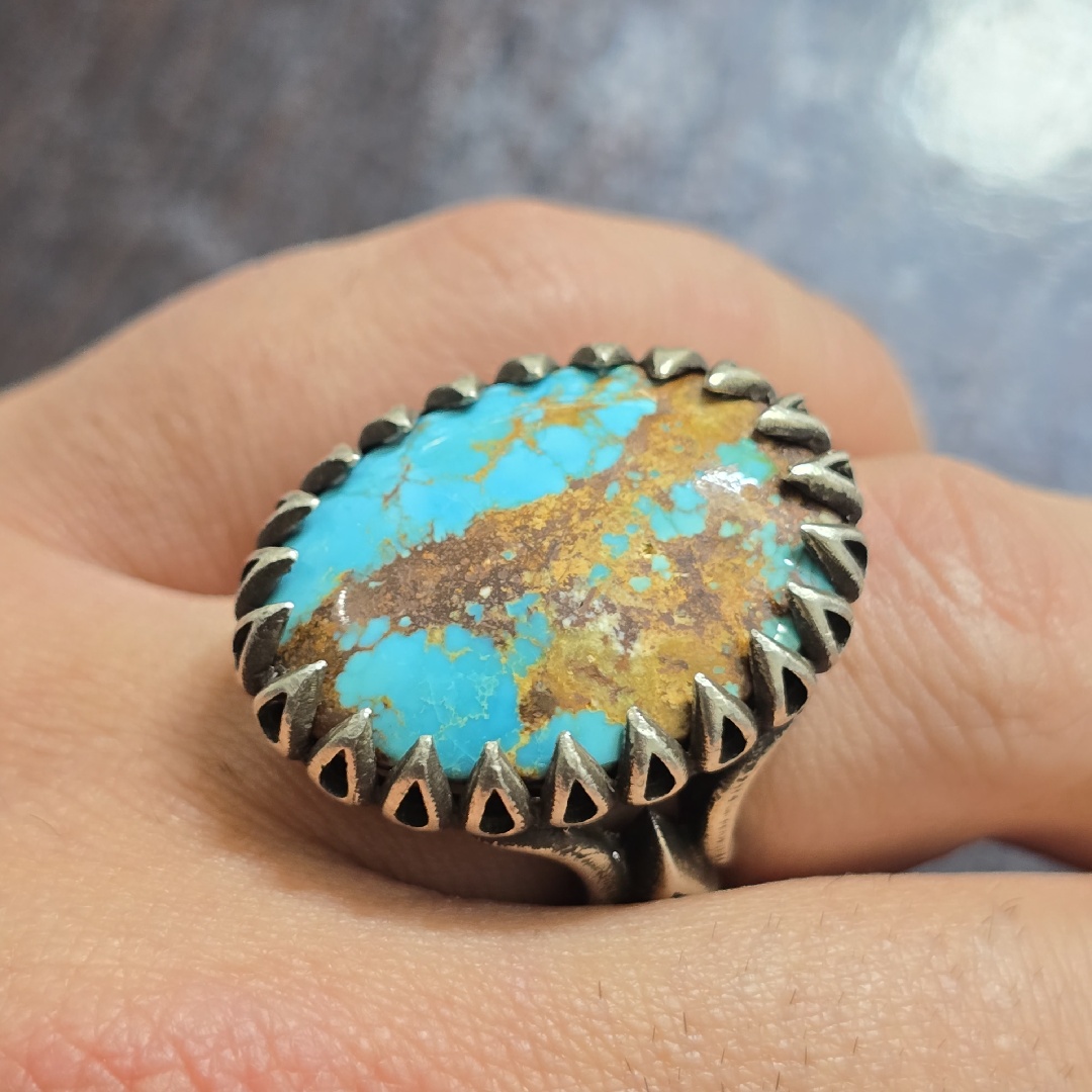 انگشتر نقره مردانه فیروزه نیشابوری معدنی