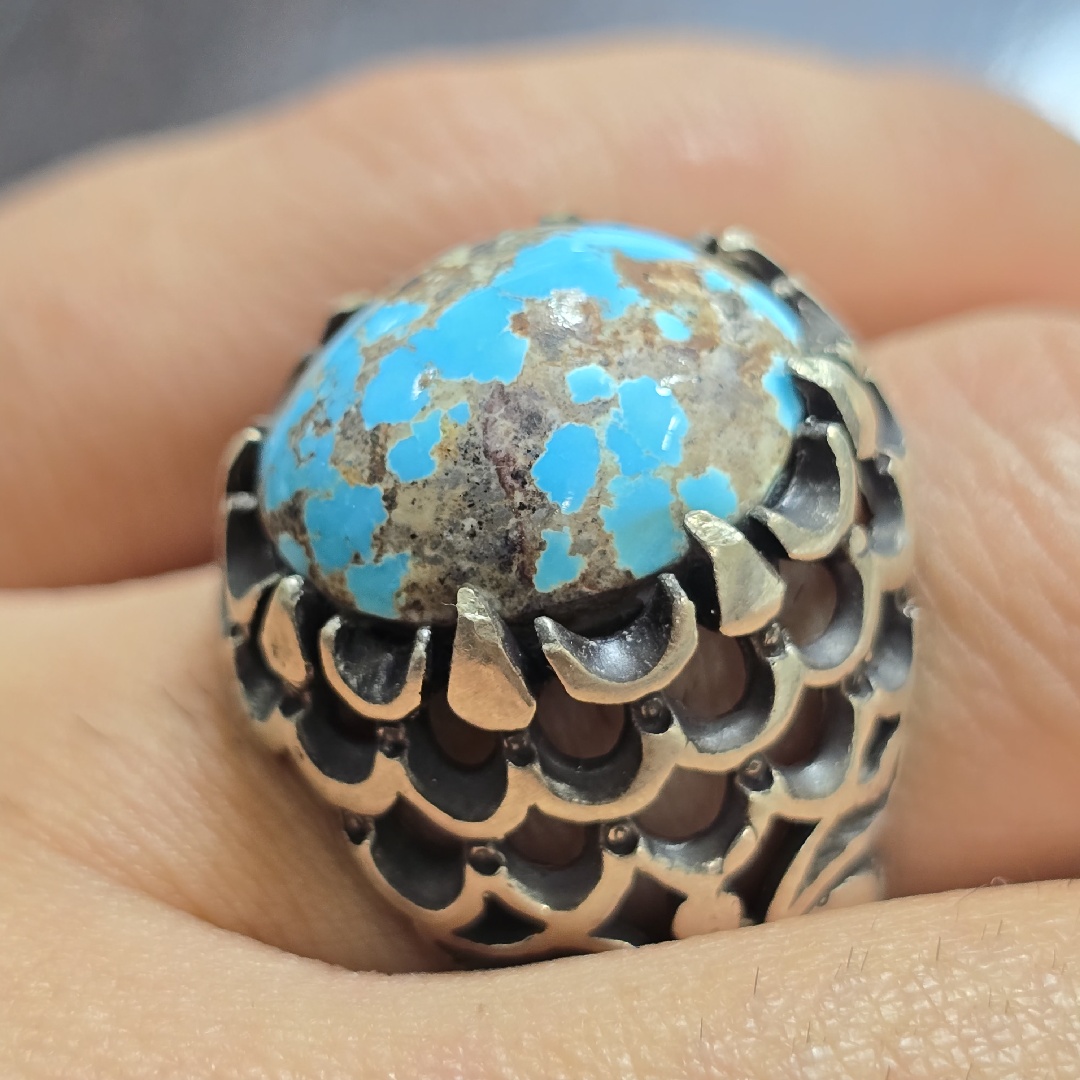 انگشتر نقره مردانه فیروزه نیشابوری معدنی